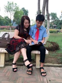 Cô giáo: Nguyễn Như Hoa – GVCN lớp 8, dạy môn Toán – cùng em Quân trao đổi các thuật Toán trong môn Tin học.