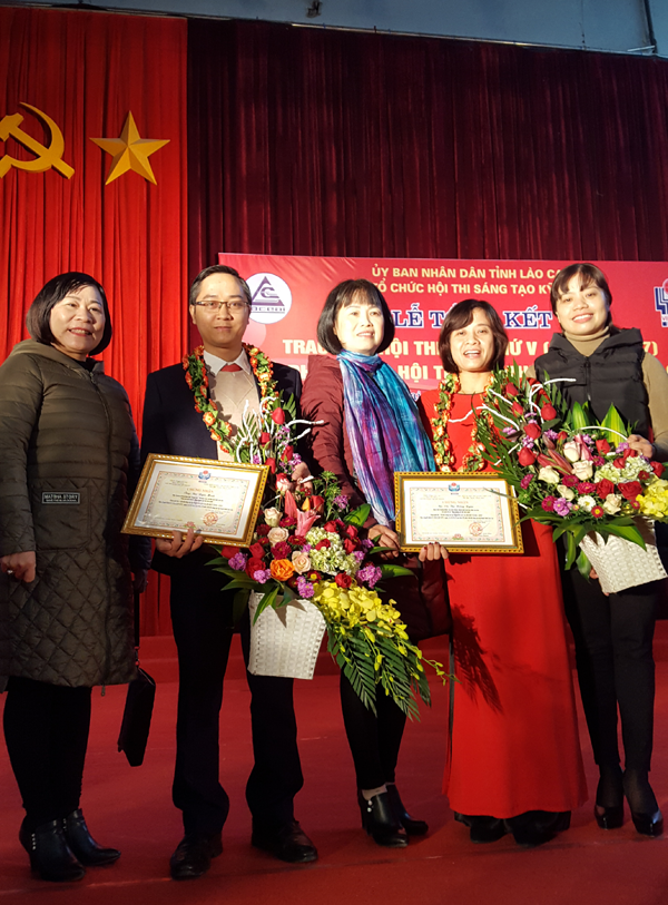 Sự năng động, sáng tạo trong lao động được lan tỏa đến cả người thân trong gia đình. Anh Minh chồng cô Ngân làm cùng nghề nên hiểu được những khó khăn vất vả của giáo viên trong việc chuẩn bị đồ dùng dạy học. Anh chị cùng nhau quyết tâm nghiên cứu ra một thiết bị có tên gọi “Máy chiếu vật thể đơn giản” để phục vụ trong việc giảng dạy tại các trường Mầm non, tiểu học và các trường phổ thông. Chiếc máy chiếu với giá thành thấp, gọn nhẹ, dễ sử dụng…. đã được đưa vào ứng dụng dạy học với hiệu quả rất cao, sử dụng rộng dãi tại các trường học, được bạn bè đồng nghiệp đánh giá cao về nhiều tính năng ưu việt. Với ứng dụng thiết thực đó ngày 20/12/2017 anh chị vinh dự được nhận giải 3, Liên Đoàn Lao Động tỉnh tặng Bằng khen đã có thành tích xuất sắc và được BCH - Đoàn TNCS Hồ Chí Minh tặng Giấy khen đã có thành tích xuất sắc trong hội thi “ Sáng tạo kĩ thuật - Tỉnh Lào Cai” lần thứ V. Anh chị còn chia sẻ đang nghiên cứu và thử nghiệm để trong năm tới sẽ đưa ra một thiết bị sáng tạo khác nữa.