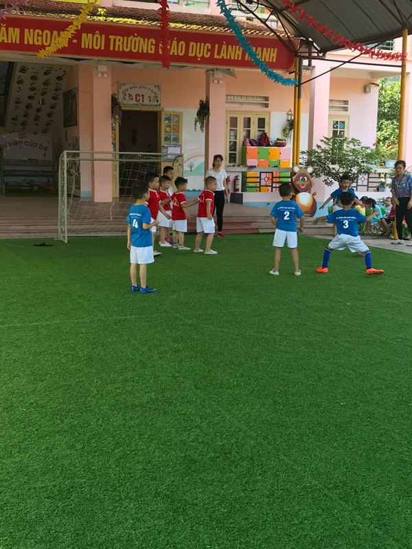 Thực hiện theo kế hoạch nhiệm vụ năm học 2017 - 2018 của Trường Mầm non Hoa Hồng, đẩy mạnh việc cho trẻ trải nghiệm các hoạt động ngoại khóa. Đoàn Thanh Niên phối hợp với nhà trường , tổ chuyên môn khối mẫu giáo lớn đã tổ chức giao lưu bóng đá mini giữa các lớp mẫu giáo 5 tuổi.
