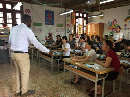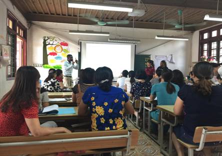 Lớp học Tiếng Anh giao tiếp cho GV trường Tiểu học Bắc Lệnh do giáo viên trung tâm HOPE- EDU- CENTER hướng dẫn Bên cạnh đó, với tinh thần tham gia tự nguyện và sự ủng hộ nhiệt tình của phụ huynh các học sinh năm nay bước vào lớp 1, các lớp học làm quen với Tiếng Anh cho học sinh lớp 1 được tổ chức tại nhà trường. Không chỉ hướng dẫn các em học sinh làm quen với tiếng Anh từ đầu cấp học mà các giáo viên giảng dạy cũng chú ý rèn các kĩ năng cơ bản cho các em như: Sự tự tin khi tham gia các hoạt động, kĩ năng giao tiếp, kĩ năng hoạt động nhóm…Đặc biệt với các hình thức dạy học linh hoạt, phong phú các em cảm thấy thoải mái và vui vẻ khi tham gia các hoạt động học tập.