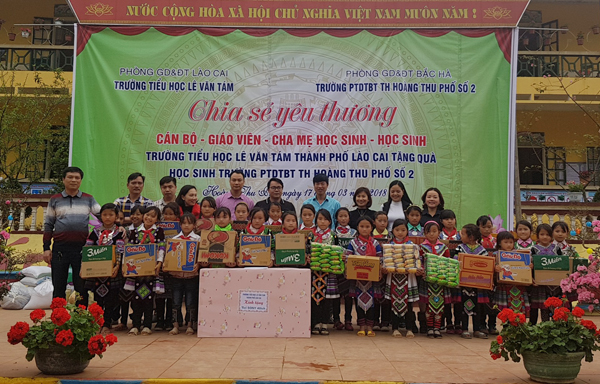 Ngày 17/3, Trường Tiểu học Lê Văn Tám (thành phố Lào Cai) đã đến thăm hỏi, động viên, chia sẻ, trao đổi về chuyên môn và trao quà cho học sinh Trường Tiểu học Hoàng thu Phố 2 (huyện Bắc Hà). Đây là hoạt động ý nghĩa nằm trong phong trào
