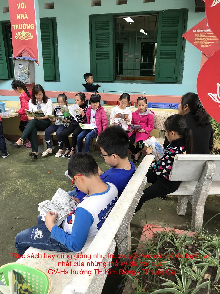 Trong năm học này, trường TH Kim Đồng đã tổ chức rất nhiều các ngày hội bổ ích và lý thú. Nhưng không thể không thiếu một trong những ngày hội đó là ngày hội sách, văn hóa đọc, được tổ chức vào sáng ngày 23/4 vừa qua - nhằm tôn vinh giá trị của sách và để khích lệ tinh thần ham đọc sách của cô và trò trường TH Kim Đồng. Từ sáng đến trường bạn nào cũng háo hức đem theo bên mình một quyển truyện, sách hoặc một quyển báo… đến đọc và chia sẻ với các bạn ở trên lớp hoặc dưới xích đu, hay những hàng ghế đá ngoài sân trường dưới những tán bóng cây xanh mát. Bên cạnh đó hơn 500 em học sinh cùng các thầy cô còn được tham khảo nhiều những cuốn sách hay trong thư viện nhà trường, do các lớp quyên góp và ủng hộ…