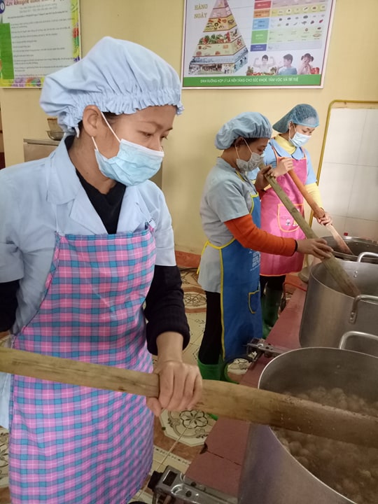 Tham mưu lãnh đạo, làm tốt công tác XHHGD với cha mẹ trẻ để hợp đồng đủ số lượng nhân viên theo quy định; bố trí cho CBQL, nhân viên cấp dưỡng, y tế được khám sức khỏe định kỳ, có giấy chứng nhận sức khỏe và tập huấn kiến thức VSATTP. Chỉ đạo thực hiện tốt các văn bản, pháp luật về vệ sinh an toàn thực phẩm, thực hiện tốt biện pháp phòng tránh ngộ độc. Hàng tháng tổ chức bồi dưỡng chuyên môn cho cán bộ, giáo viên và nhân viên, tổ chức sinh hoạt chuyên đề, hội thảo trong trường để giáo viên trao đổi, thảo luận và rút kinh nghiệm, chỉ đạo, hướng dẫn giáo viên dạy lồng ghép, tích hợp các nội dung giáo dục VSATTP phù hợp độ tuổi; giữa giáo viên và nhân viên có sự gắn kết chặt chẽ để cùng cùng thực hiện tốt VSATTP. Chỉ đạo thực hiện tốt công tác y tế trường học, giao cho cán bộ Y tế chịu trách nhiệm chính trong việc giám sát chất lượng VSATTP. Tăng cường mua sắm trang thiết bị đồ dùng phục vụ cho học sinh đảm bảo vệ sinh an toàn thực phẩm trong nhà trường