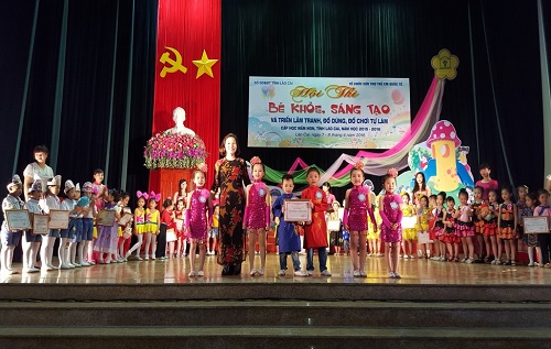 Trong hai ngày 07, 08/4/2016 Sở GD&ĐT Lào Cai tổ chức Hội thi "Bé khỏe, bé sáng tạo và triển lãm tranh, đồ dùng, đồ chơi tự làm". Cấp học mầm non Phòng GD&ĐT thành phố Lào Cai có 06 thí sinh nhí đại diện cho hơn 8000 trẻ của 30 trường mầm non tham gia, với 2 nội dung: