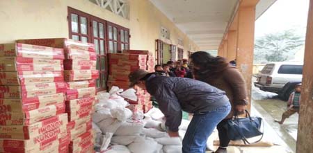 Đoàn đang tập kết quà và tặng quà cho 66 hộ dân thôn Láo Lý