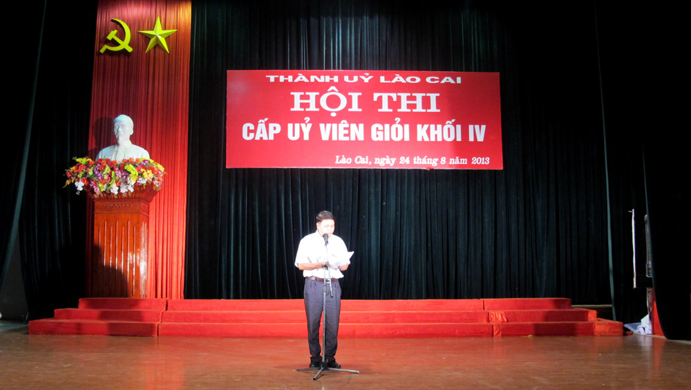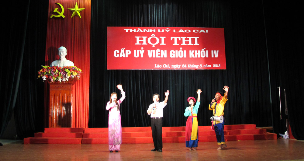 Sáng ngày 24/8/2013, tại hội trường lớn Trung tâm Văn hóa – TT-TThể thao thành phố Lào Cai, khối thi số 4 đã tổ chức Hội thi “Cấp ủy viên giỏi” năm 2013 gồm 7 đội đến từ 8 đơn vị trong khối Văn hóa – Xã hội thành phố Lào Cai.
