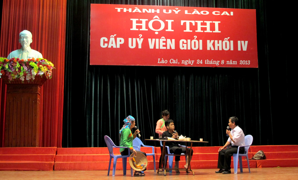 Các thí sinh phải trải qua 3 phần thi là Chào hỏi, Kiến thức nghiệp vụ công tác Đảng và Tiểu phẩm xử lý tình huống. Hội thi năm nay là những hoạt động gắn liền với đợt thi đua lập thành tích chào mừng kỷ niệm 55 năm ngày Bác Hồ lên thăm Lào Cai (23/9/1958-23/9/2013) và nâng cao năng lực hoạt động của cấp ủy viên.