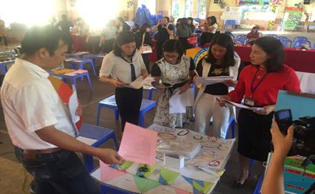 Ban giám khảo chấm sản phẩm sáng tạo của giáo viên