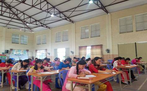 Kiến thức nghiệp vụ, giáo viên làm bài thi viết trong thời gian 50 phút. Nhiều bài viết của giáo viên rất tốt, thể hiện kiến thức nghiệp vụ và năng lực của từng giáo viên.