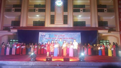Đ/c Hoàng Kim Chi - Chủ tịch Liên đoàn lao động thành phố; Đ/c Ngô Vũ Quốc -Trưởng phòng GD&ĐT thành phố trao giải cho giáo viên tham gia cuộc thi Cuộc thi