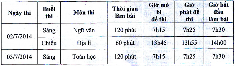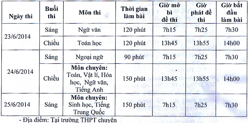 THÔNG BÁO LỊCH THI VÀO THPT CHUYÊN VÀ THPT
