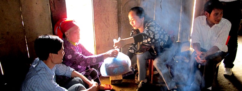 Đ/c Đỗ Thị The thăm gia đình học sinh vùng cao