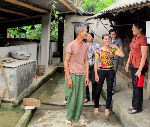 Đồng chí Nguyễn Thị Bắc - Phó chủ tịch UBND thành phố thăm các gia đình điển hình về hưởng ứng tiêu chí "Nhà sạch, vườn đẹp" tại thôn Phời II, xã Tả Phời.