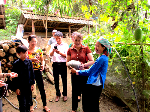 Đồng chí Nguyễn Thị Bắc - Phó chủ tịch UBND thành phố thăm các gia đình có mô hình sản xuất kinh tế giỏi tại thôn Phời II, xã Tả Phời.