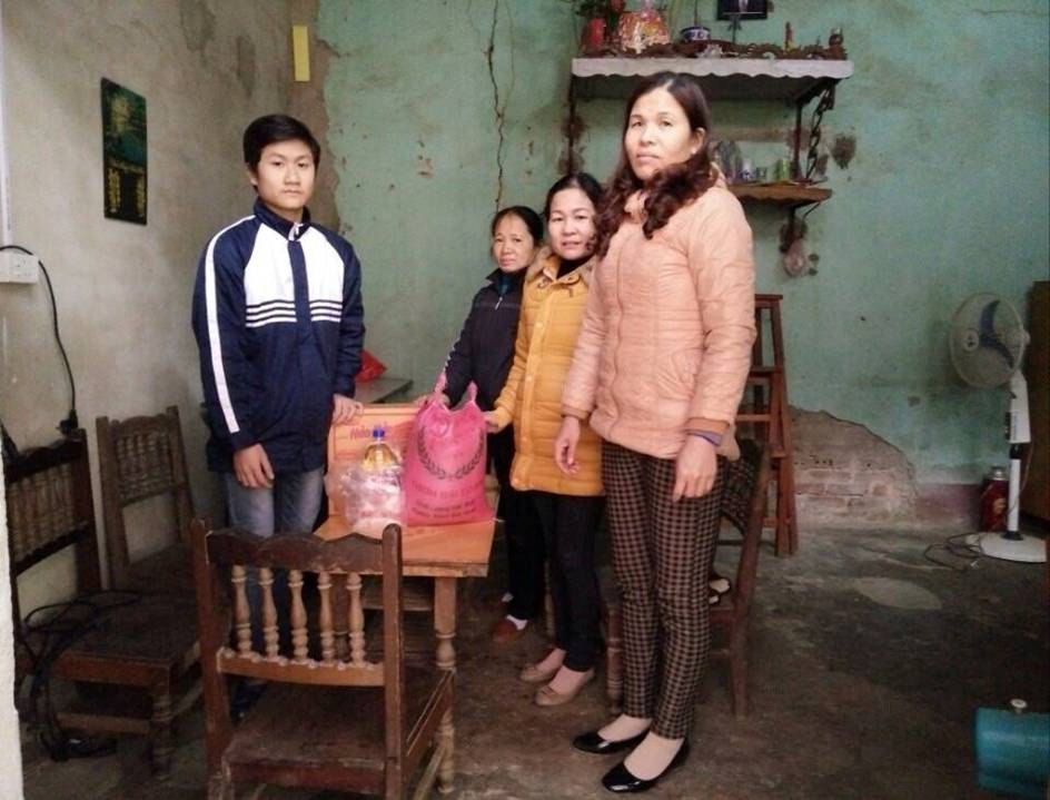 Ảnh giáo viên trường Mầm non Hoa Ban trao quà cho các gia đình có hoàn cảnh khó khăn