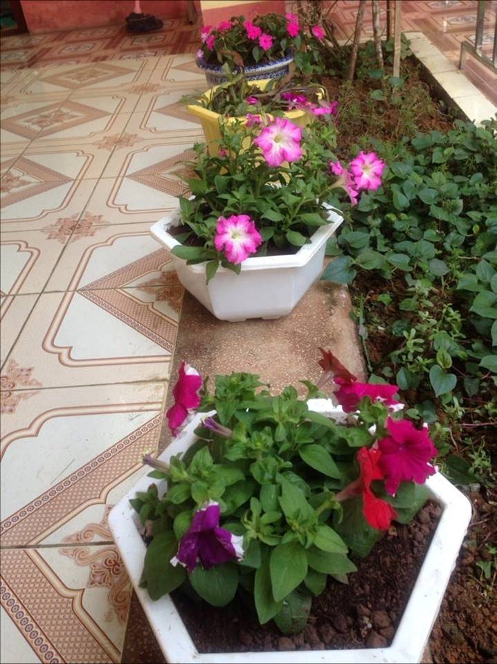 Xuân về rực rỡ trên những chậu hoa của tập thể trường MN Hoa Ban