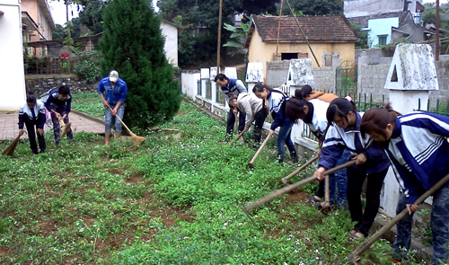 Để thực hiện tốt nội dung này, nhà trường đã phối hợp chặt chẽ với ngành văn hóa ở địa phương để chăm sóc công trình di tích lịch sử, văn hóa phù hợp với các cấp học. Đồng thời hướng dẫn học sinh nắm được yêu cầu kĩ thuật về việc chăm sóc, bảo vệ di tích. Hàng tháng, liên đội nhà trường tổ chức cho các em học sinh lao động vệ sinh nhà truyền thống cách mạng của xã Cam Đường, chăm sóc mốc son lịch sử xã Cam Đường. Công việc của các em chủ yếu là làm vệ sinh, lau dọn nhà truyền thống, cắt tỉa cành cây, hoa lá và trồng cây xanh để có bóng mát. Đây chính là các hoạt động phát huy tính tích cực của học sinh trong việc tự giáo dục và góp phần bảo tồn, phát huy truyền thống văn hóa, lịch sử của địa phương và quốc gia trong giai đoạn hội nhập hiện nay. Để chào đón Tết nguyên đán Nhâm Thìn 2012, vào chiều 13/01/2012 nhà trường đã tổ chức cho các đoàn viên, thanh niên trong nhà trường đến vệ sinh, dãy cỏ, lau dọn nhà truyền thống xã Cam Đường.