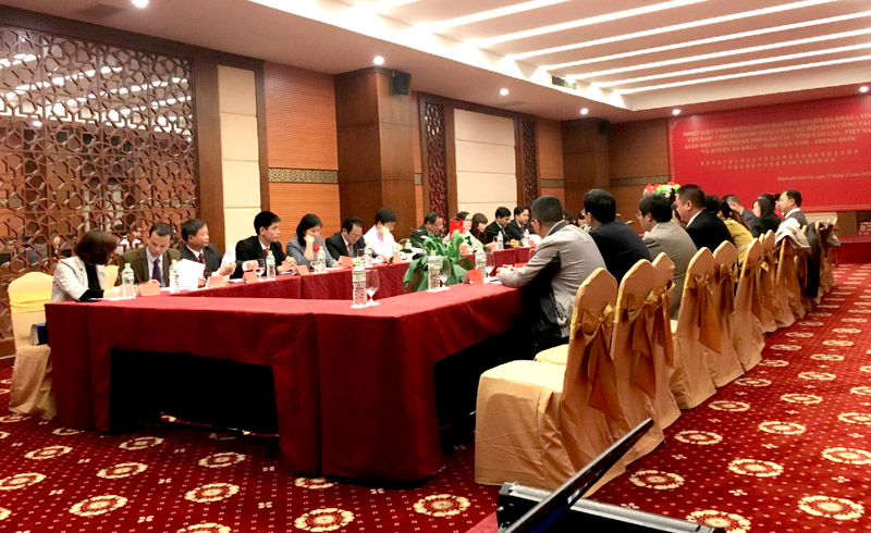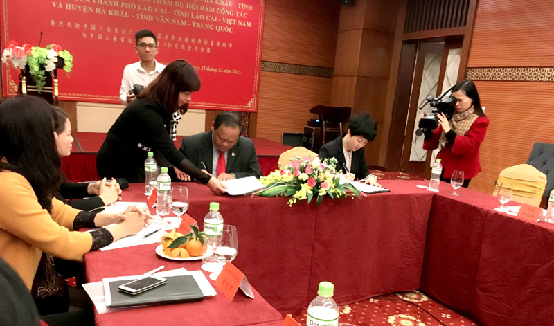 Đoàn Đại biểu thành phố Lào Cai do ông Đoàn Đình Khôi – Phó chủ tịch UBND thành phố Lào Cai làm trưởng đoàn cùng các đồng chí lãnh đạo Phòng Giáo dục và Đào tạo, Hiệu trưởng một số trường Tiểu học, THCS tham dự Hội đàm. Trong không khí thân mật hữu nghị, hai bên đã đánh giá tình hình hợp tác giáo dục giữa thành phố Lào Cai (Việt Nam) và Cục Giáo dục Hà Khẩu (Trung Quốc). Qua một năm thực hiện biên bản ghi nhớ giữa Phòng GD&ĐT thành phố Lào Cai và Cục Giáo dục Hà Khẩu có nhiều kết quả quan trọng; công tác chỉ đạo triển khai dạy học tiếng Trung tại Việt Nam và dạy tiếng Việt tại Trung Quốc được hai bên tổ chức thực hiện có hiệu quả; nhiều lượt cán bộ, giáo viên và học sinh hai bên đã sang tham quan trải nghiệm giao lưu chia sẻ kinh nghiệm về công tác dạy tiếng Việt và tiếng Trung đồng thời tổ chức giao lưu văn nghệ thể dục thể thao đã góp phần đẩy mạnh công tác hợp tác toàn diện giữa hai địa phương.