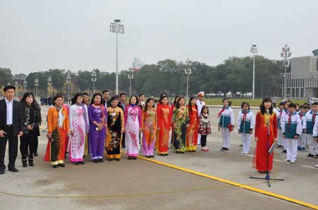 Chiều hôm đó, đoàn chúng tôi về Hà Nội. Sau một đêm nghỉ ngơi vui vẻ tại khách sạn, 6 giờ sáng ngày 25/1/2015, đoàn chúng tôi tới lăng Bác. Đoàn dự Lễ chào cờ và xem duyệt binh theo nghi thức quốc gia tại Quảng trường Ba Đình. Tiếp đó, cả đoàn được xem thước phim tư liệu về những giây phút cuối cùng của Bác Hồ tại Hội trường Ban quản lý Lăng  Hồ Chủ Tịch. Bác ra đi vào ngày 2/9/1969, đúng ngày kỉ niệm Bác đã khai sinh nền độc lập cho dân tộc Việt Nam. Cả đất nước hướng về Bác, mùa thu của 46 năm về trước, bầu trời ảm đạm một sắc vàng như tiếc thương cho sự ra đi của Bác. Đến những cụ già, những anh hùng cũng phải im lặng cúi đầu, đàn em thơ bưng mặt khóc nức nở. Biết trước rằng nỗi đau này rồi cũng sẽ đến nhưng lại mong sao nó đừng đến, có đến cũng đừng đến như ngày hôm nay. Phải chăng đó chính là qui luật của tự nhiên? Ngày hôm nay Bác đã phải dừng chân rồi sao? Ước gì Bác sống mãi với thời gian để cho tôi có thể một lần trò chuyện cùng với Bác, để Bác đặt lên trán của mỗi đứa trẻ chúng con một nụ hôn thật ngọt ngào. Ước chi được như vậy thì thật tốt biết bao!