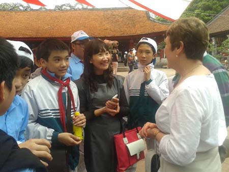 Đúng 10h40ph sáng, đoàn chúng tôi vào thăm Văn Miếu Quốc Tử Giám, nơi được coi là trường đại học đầu tiên của Việt Nam, nơi đào tạo nên những nhân tài cho đất nước. Tại đây, chúng tôi được gặp gỡ, trò chuyện với nhiều người nước ngoài, vốn Tiếng Anh của chúng tôi lại có dịp được phát huy. Các cuộc giao lưu thật thân thiện, cởi mở, học sinh chúng tôi đã để lại những ấn tượng rất tốt đẹp trong lòng các du khách quốc tế. Tiếp theo tôi được đi thăm hồ Hoàn Kiếm, nơi tháp Rùa ngả bóng xuống mặt nước trong xanh, nơi  các cụ Rùa sinh sống hàng trăm năm qua. Nơi đó, có nghiên mực tháp bút thể hiện khí phách của người Hà Nội và tinh thần hiếu học của nhân dân ta. Cả đoàn tới thăm tượng đài Lý Thái Tổ - vị vua đã có công trong việc rời đô về Thăng Long, đây cũng là nơi dừng chân cuối cùng của cuộc hành trình.