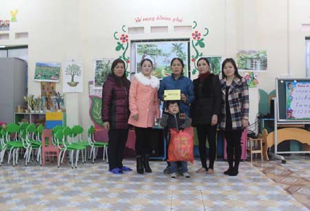 Ngày 05/02/2015, Nhà trường đã tổ chức đến thăm hỏi và trao tặng quà tết cho các cháu là: Học sinh mắc bệnh hiểm nghèo, ảnh hưởng chất độc da cam, khuyết tật, bị bỏng ở gia đình, trị giá: 2.200.000đ. Mặc dù chỉ là phần kinh phí nhỏ bé nhưng đó là tấm lòng của toàn thể cán bộ, giáo viên, nhân viên trong nhà trường muốn chia sẻ với mong muốn dành những gì tốt đẹp nhất cho trẻ. Qua đó khích lệ động viên các cháu vui vẻ đón xuân, để các cháu có tâm thế tốt bước vào một năm mới với những niềm vui và hạnh phúc mới./.