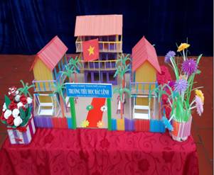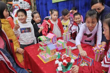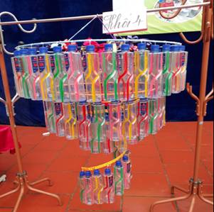 Các em học sinh làm những sản phẩm thông dụng từ phế liệu