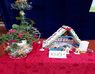 Ngay từ sáng sớm, các bậc phụ huynh đã nô nức đưa con đến trường tham gia ngày hội tạo nên bầu không khí tưng bừng, nhộn nhịp. Các em học sinh thì tỏ ra rất háo hức với việc được tham gia các hoạt động bổ ích của ngày hội. Hôm nay, các em sẽ được trình bày ý tưởng sáng tạo, sử dụng các loại vật liệu như ống hút, vỏ chai nhựa, giấy màu, hộp xốp, que kem, túi ni lông,…để cắt, dán, làm thành những vật dụng hữu ích trong cuộc sống như: bình cắm hoa, ống đựng bút với nhiều kiểu dáng, đèn lồng, đèn chùm, người tuyết, mô hình trường học, xích đu, hoa trang trí, khung ảnh,…Qua bàn tay khéo léo của các em cùng với sự trợ giúp của thầy cô giáo và phụ huynh học sinh, các sản phẩm được làm ra không chỉ đẹp mà còn ngộ nghĩnh, thể hiện những ý tưởng sáng tạo của tuổi thơ, các sản phẩm được trưng bày thu hút đông đảo mọi người đến tham quan.