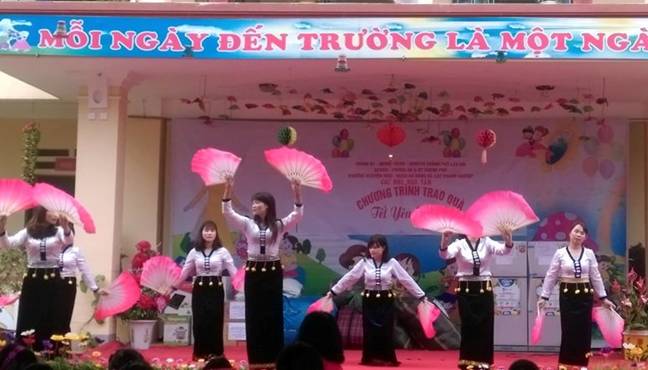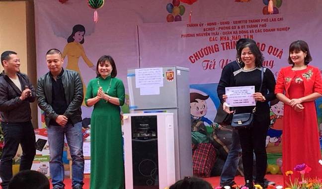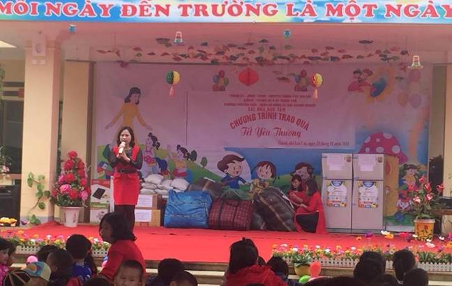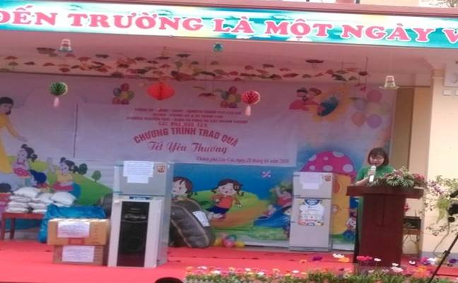 Mở đầu buổi trao quà là một số tiết mục văn nghệ của các cháu học sinh chào mừng các vị khách quý đã không quản thời tiết lạnh giá mang những túi quà đầy tình nghĩa đến với các cháu. Tiếp theo là phần trao quà được diễn ra hết sức trang trọng và thắm đượm tình người. Đ/C Minh – trưởng đoàn từ thiện đến từ phường Nguyễn Trãi quận Hà Đông, thay mặt Ban tổ chức chương trình Tết yêu thương” cho các cháu đối với trường Mầm non Hợp hiện vật quyên góp đã lên tới trên 36 triệu đồng. Toàn bộ số tiền mặt đã được Ban tổ chức sử dụng để mua 01 Máy lọc nước Ro, 28 mét thảm, 01 nồi cơm điện, 01 bếp từ, 01 tủ lạnh, hơn 100 bộ quần áo, 9 tạ gạo, bánh, kẹo….tặng cho các cháu của trường mầm non Hợp Thành. Xuất phát từ thành phố Lào Cai lúc 8 giờ sáng ngày 27/01/2018, đoàn các đ/c lãnh đạo thành phố, ban chỉ huy quân sự thành phố, lãnh đạo PGD&ĐT thành phố doanh nghiệp xây dựng CĐT, các nhà hảo tâm đến từ phường Nguyễn Trãi quận Hà Đông, Phường Lê Trân thành phố Hải Phòng, nhà hàng Thuỷ Mừng Lào Cai tới trường mầm non Tả Phời, nơi các cô giáo, các bậc phụ huynh và các cháu học sinh của hai nhà trường MN Hợp Thành, MN Tả Phời đang háo hức đón chờ đoàn.