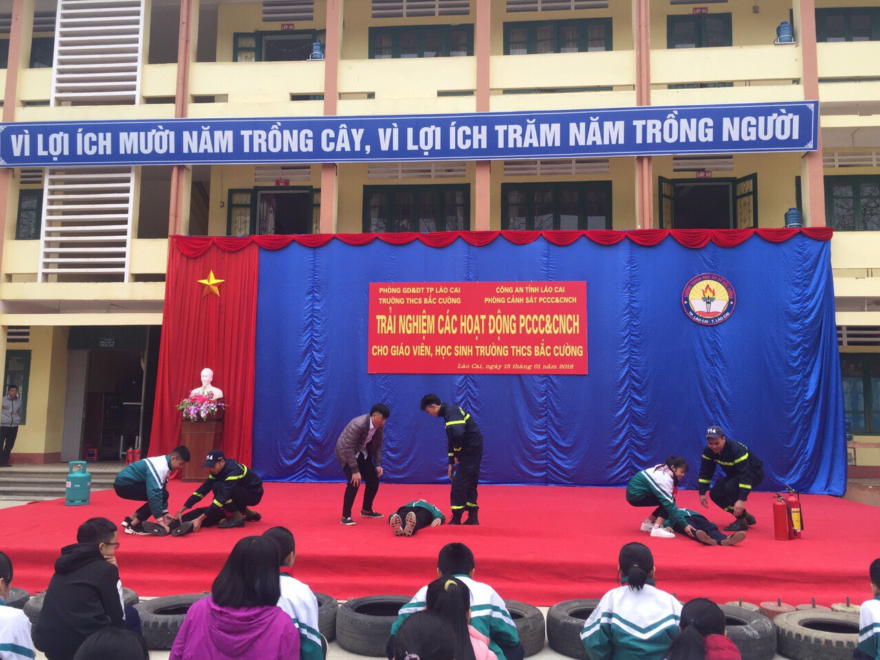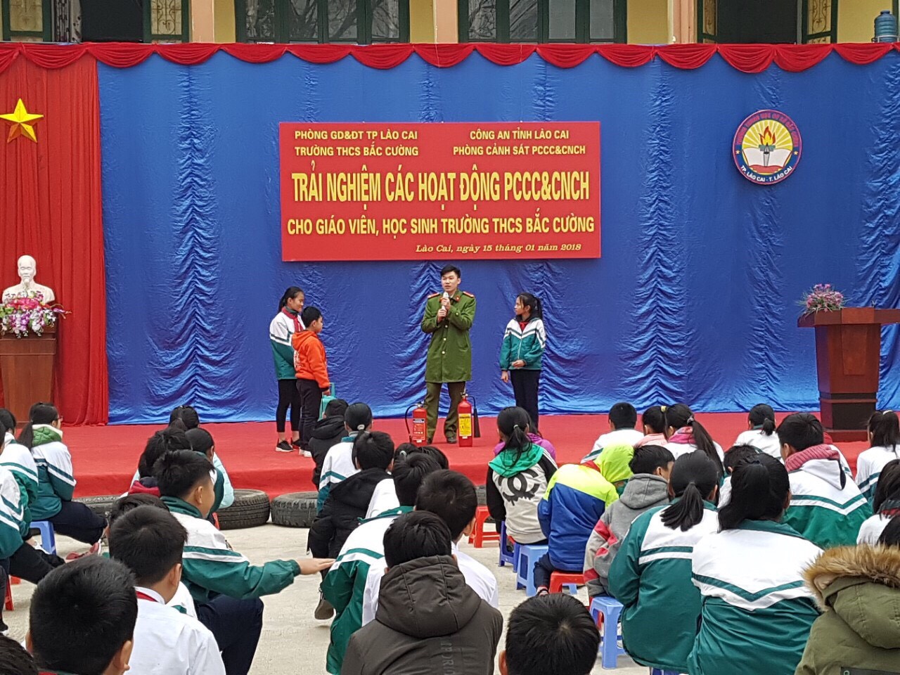 Sáng ngày 15 tháng 01 năm 2018, Trường THCS Bắc Cường, thành phố Lào Cai phối hợp với Phòng Cảnh sát PCCC&CNCH Công an tỉnh Lào Cai tổ chức buổi trải nghiệm cho giáo viên, học sinh tại nhà trường.
