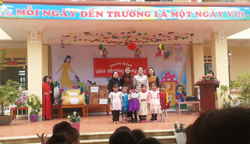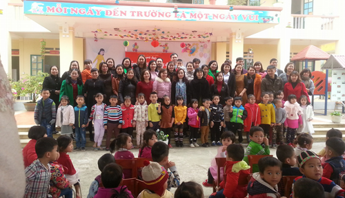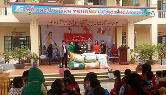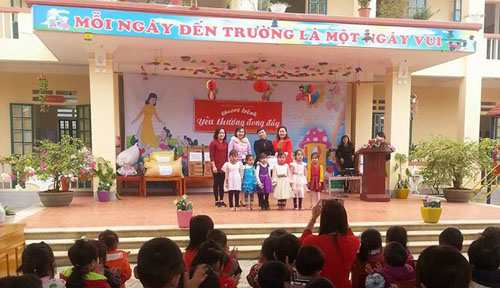 Ban giám hiệu, công đoàn nhà trường MN Hoa Hồng tặng quà cho các cháu trường mầm non Tả Phời