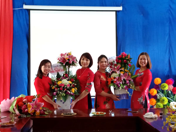 Các tổ công đoàn tặng hoa chúc mừng BGH nhà trường. |