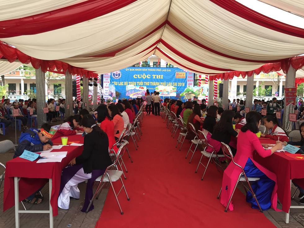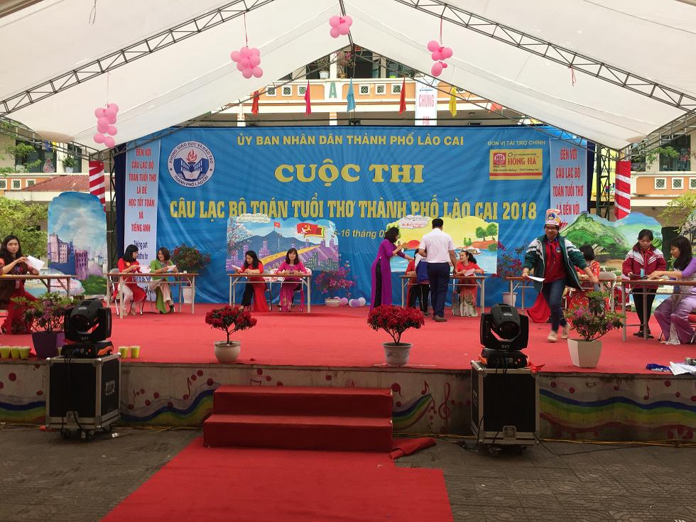 Ngày 15-16/3/2018 Uỷ ban nhân dân thành phố Lào Cai tổ chức Cuộc thi câu lạc bộ Toán tuổi thơ cấp thành phố năm 2018 với 227 học sinh (tăng 43 học sinh so với năm học trước) đến từ các trường phổ thông trên tiểu học thành phố cùng với học sinh phổ thông đến từ các huyện Sa Pa, Văn Bàn, Bảo Thắng, Bảo Yên, Bắc Hà được chia thành 32 đội. Cuộc thi diễn ra trong bầu không nô nức của các em học sinh một hình thức “Học mà chơi – chơi mà học” kích thích lòng ham học, say mê học toán của học sinh, tạo môi trường thân thiện, toàn diện.Trải qua 2 ngày tranh tài hấp dẫn đó là: phần thi cá nhân, đồng đội. Riêng phần thi đồng đội các em tham gia vòng thi tiếp sức toán học, du lịch toán học. Nội dung toán học phù hợp theo chuẩn Kiến thức kĩ năng lớp học, cấp học, được thể hiện qua ngôn ngữ tiếng Anh. Các đội thi đã mang lại cho cuộc thi nhiều ấn tượng mạnh mẽ; các em học sinh đã thể hiện bản lĩnh, kĩ năng tốt trong phần thi cá nhân và tự tin có những chiến lược, chiến thuật hay chiến thuật trong phần thi đồng đội, và trong ngày hội có hơn 250 học sinh tham gia cổ vũ được viêt ý tưởng của mình về môn học Toán, lập lên một cuốn kỉ yếu kỉ lục của ngành Giáo dục.