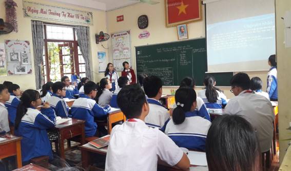 Giờ dạy môn KHTN lớp 9 của cô Nguyễn Thị Thu Hiền Sau đó, đoàn đã dự giờ thăm lớp 02 tiết thuộc môn KHTN lớp 9 và KHXH lớp 7 do cô giáo Nguyễn Thị Thu Hiền và Dương Ngọc Lan dạy minh họa. Trong giờ học, giáo viên tổ chức các hoạt động dạy học linh hoạt tạo được hứng thú, sự chủ động, tích cực học tập cho học sinh. Các thầy cô giáo trong đoàn đã đánh giá cao việc thực hiện đổi mới phương pháp dạy học theo mô hình trường học Việt Nam mới của trường THCS Ngô Văn Sở, xứng đáng là đơn vị điển hình được học tập, nhân rộng trong toàn Tỉnh.