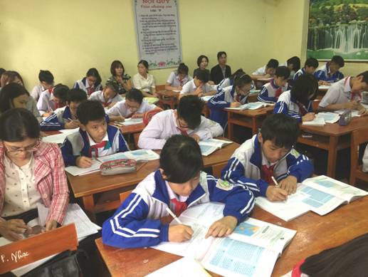 Đoàn dự giờ môn KHXH lớp 7 của cô Dương Ngọc Lan Đoàn công tác còn tham quan Thư viện, phòng truyền thống, cảnh quan, xem học sinh tập bài đồng diễn hát múa sân trường.