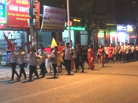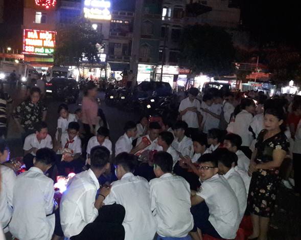 Học sinh trường THCS Ngô Văn Sở rước đèn trung thu Tới dự “Đêm hội trăng rằm” có Đ/C Nguyễn Thanh Sở - Ủy viên BTV thành ủy, Chủ tịch mặt trận tổ quốc Việt Nam thành phố; Đ/C Đoàn Văn Ngàn - Ủy viên BCH Đảng bộ thành phố, Phó chủ tịch UBND thành phố; Đ/C Nguyễn Ngọc Liên - Ủy viên BCH đảng bộ thành phố, trưởng phòng LĐTBXH thành phố Lào Cai.
