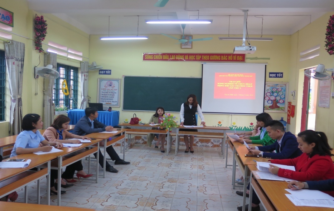 Ảnh: Trao đổi hoạt động Đội TNTP Hồ Chí Minh của các đ/c TPT Buổi chiều ngày 7/4 là chương trình Hội thảo chia sẻ kinh nghiệm hướng dẫn HS NCKH và hoạt động giao lưu thể thao đá bóng giữa các đội.