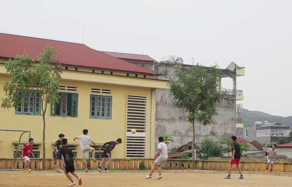 Ảnh: Trận bóng giao hữu giữa học sinh của 9 trường THCS