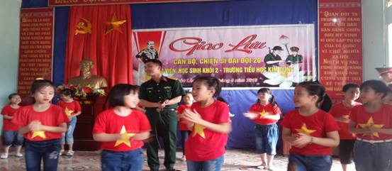 Được sự nhất trí của Ban giám hiệu trường Tiểu học Kim Đồng, sáng ngày 14/4/2018, giáo viên chủ nhiệm của Khối 2 cùng phối hợp với Ban đại diện cha mẹ học sinh đã tổ chức chuyến đi trải nghiệm thực tế cho 113 học sinh tại đơn vị Đại đội 20- Bộ chỉ huy Quân sự tỉnh Lào Cai. Đến dự với buổi giao lưu có lãnh Đạo Đơn vị :