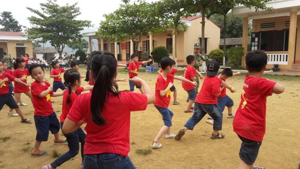Cô giáo Đỗ Thị Mừng, Nguyễn Thị Hằng, Phùng Thị Huyền Thư- (giáo viên chủ nhiệm của 3 lớp) Cùng đông đủ các chiến sĩ trong đơn vị và hơn 30 phụ huynh của 3 lớp cùng tham gia.