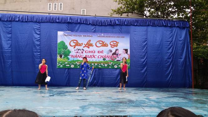 Nhằm tạo cơ hội cho các em học sinh được làm quen với môi trường học tập mới,tạo tâm thế phấn khởi để các em chuẩn bị bước vào năm học mới.Sáng ngày 16/4/2018 tại Trường tiểu học Kim Đồng tổ chức mời 160 em học sinh mẩu giáo 5 tuổi của trường mầm non Linh Anh đến giao lưu, chia sẻ với chủ đề : Nâng bước chân em và thăm quan hoạt động của nhà trường. Đến thăm trường tiểu học Kim Đồng các em được tham gia dự giờ chào cờ đầu tuần,được xem, giao lưu các câu hỏi, chia sẻ và tham gia các tiết mục văn nghệ hết sức hấp dẫn và sôi động do đội văn nghệ nhà trường biểu diễn, các em được xem hoạt động tập thể của cả trường.