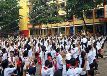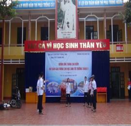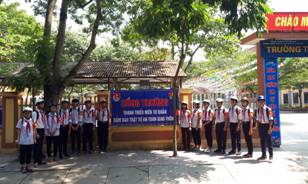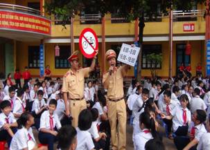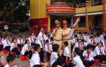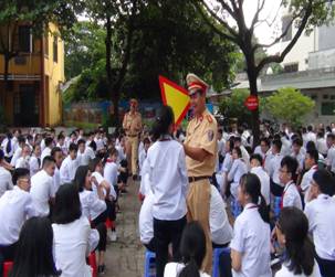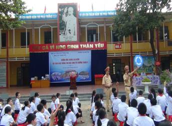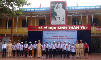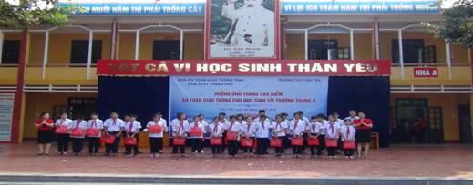 Học sinh lớp 9E thể hiện tiểu phẩm: “An toàn giao thông học đường” Nhân ngày tổ chức hưởng ứng tháng cao điểm ATGT cho học sinh tới trường, Ban ATGT tỉnh đã trao tặng 20 chiếc mũ bảo hiểm và hơn 1000 cuốn cẩm nang lái xe an toàn cho học sinh của nhà trường.