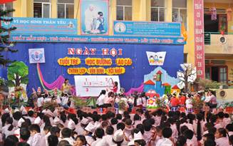 Hình ảnh HS khó khăn được tặng quà và GameShow như Vì bạn xứng đáng Qua 3 năm thực hiện, từ những việc làm thiết thực nêu trên, việc giáo dục lòng nhân ái và giá trị sống cho học sinh đem lại hiệu quả rõ nét như: