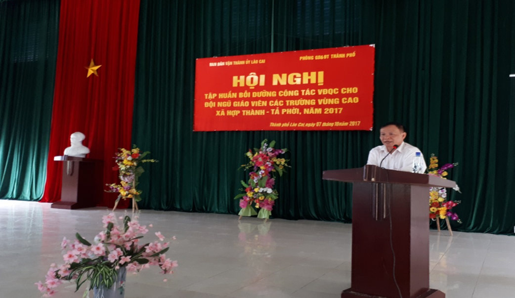 Ban Dân vận Thành Uỷ- Phòng Giáo dục và Đào tạo thành phố Lào Cai tổ chức Hội nghị tập huấn bồi dưỡng công tác vận động quần chúng cho đội ngũ giáo viên các trường vùng cao thuộc 2 xã Tả Phời, Hợp Thành năm 2017.