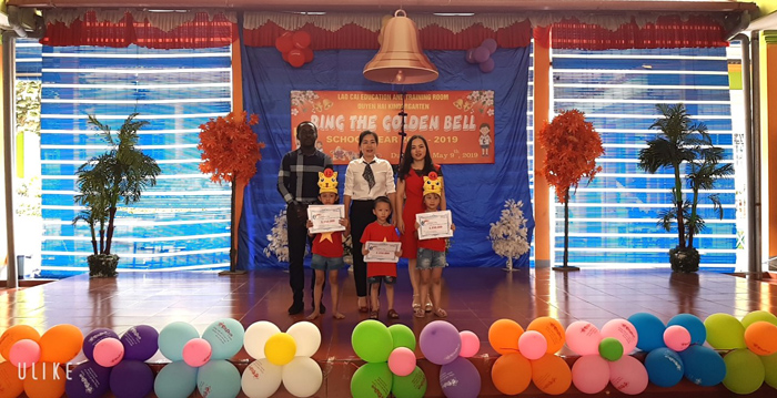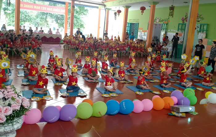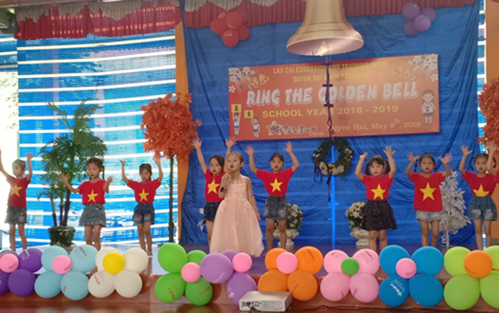 Với mong muốn mang lại cho trẻ Mầm non một sân chơi ngoại khóa bổ ích, giúp trẻ mạnh dạn tự tin hơn trong giao tiếp tiếng Anh. Trẻ có cơ hội được giao lưu và thực hành vốn kiến thức đã được học với các bạn trong khối ở tất cả các độ tuổi. Ngày 09/ 05/ 2019, trường Mầm non Duyên Hải đã phối hợp với trung tâm Anh ngữ Popodoo Lào Cai tổ chức sân chơi RUNG CHUÔNG VÀNG “ RING THE GOLDEN BELL” cho các bé trong độ tuổi mẫu giáo từ 3 – 5 tuổi. Về dự với hội thi có đại diện ban giám đốc và giáo viên tiếng anh của trung tâm Anh ngữ Popodoo; ban giám hiệu, giáo viên và đông đảo phụ huynh trường Mầm non Duyên Hải.