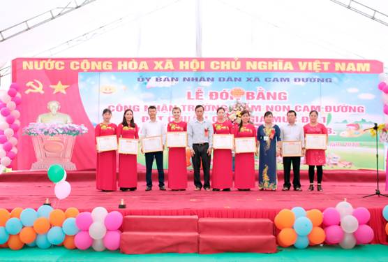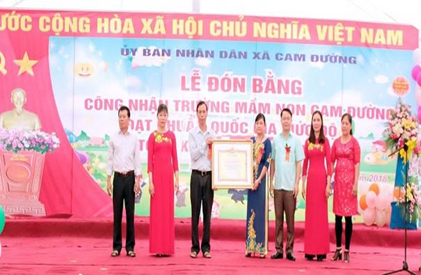 Trong không khí hân hoan của những ngày tháng 5 lịch sử, toàn Đảng, toàn dân đang hướng về Bác Hồ kính yêu vị cha già của dân tộc Việt Nam. Hòa chung vào không khí hân hoan phấn khởi đó. Ngày 24/5/2018 Ủy ban nhân dân xã Cam Đường long trọng tổ chức lễ đón bằng công nhận trường mầm non Cam Đường đạt chuẩn Quốc gia mức độ 1 và tổng kết năm học 2017-2018. Tới dự buổi lễ có đồng chí Đoàn Văn Ngàn – Phó chủ tịch UBND thành phố cùng các đồng chí lãnh đạo các ban ngành đoàn thể của Thành phố; lãnh đạo các xã phường, các cơ quan doanh nghiệp, lãnh đạo các trường mầm non, các đơn vị kết nghĩa, các thế hệ các thầy cô giáo và toàn thể cán bộ giáo viên, nhân viên, học sinh và các bậc phụ huynh trường mầm non Cam Đường. Tại buổi lễ Ủy ban nhân dân xã Cam Đường và trường mầm non Cam Đường vinh dự được đồng chí Đoàn Văn Ngàn – Phó chủ tịch Ủy ban nhân dân thành phố Lào Cai trao Bằng công nhận trường mầm non đạt chuẩn quốc gia mức độ 1. Thành quả đó đã khẳng định sự nỗ lực, cố gắng vươn lên không ngừng của cấp ủy Đảng, chính quyền địa phương, của tập thể cán bộ, giáo viên, nhân viên, các bậc cha mẹ trẻ và các bé trong suốt những năm qua. Bên cạnh đó là sự quan tâm sâu sắc của các đồng chí lãnh đạo Tỉnh, thành phố Lào Cai và sự chỉ đạo sát sao của Sở Giáo dục, Phòng Giáo dục và Đào tạo; đặc biệt sự phối hợp chặt chẽ, cộng đồng trách nhiệm của hội cha mẹ trẻ, sự đồng tình ủng hộ của các cơ quan đoàn thể và các tổ chức xã hội tạo mọi điều kiện giúp đỡ, hỗ trợ cho trườngmầm non Cam Đường sớm hội tụ đủ các tiêu chí trường mầm non đạt chuẩn quốc gia mức độ 1.