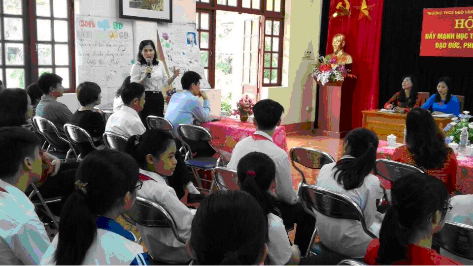Cô giáo Cao Thị Thanh Hân- Phó Trưởng phòng GD&ĐT giao lưutrong buổi Hội thảo tại trường THCS Ngô Văn Sở