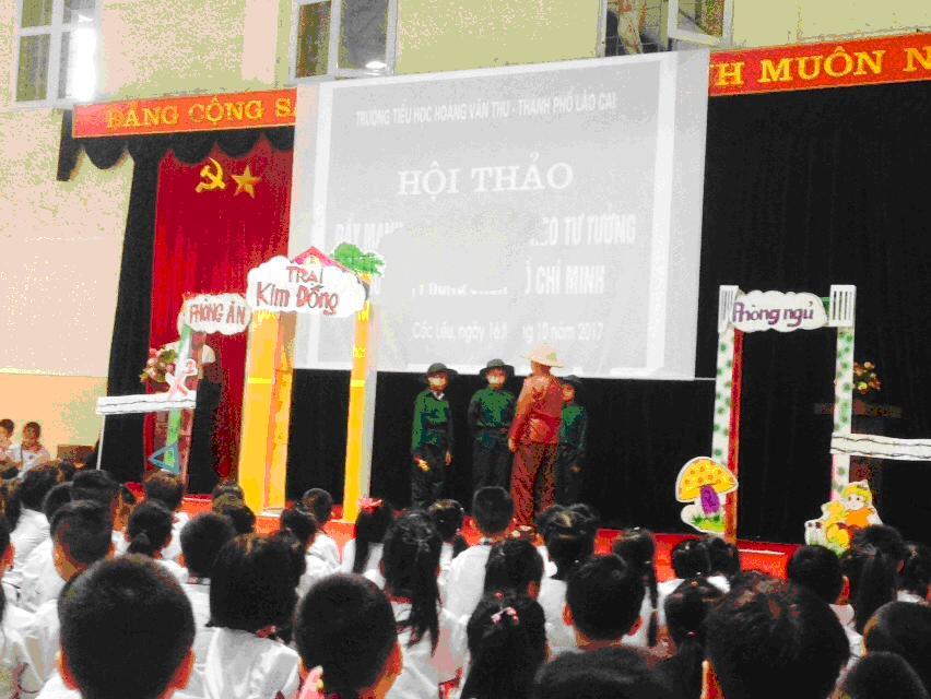 HS trường tiểu học Hoàng Văn Thụ với tiểu phẩm “ Bác Hồ đến thăm trại mồ côi Kim Đồng”
