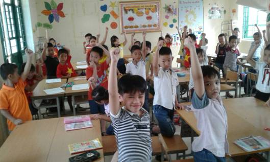 Học sinh lớp 1 hân hoan giao lưu cùng các bạn mới quen
