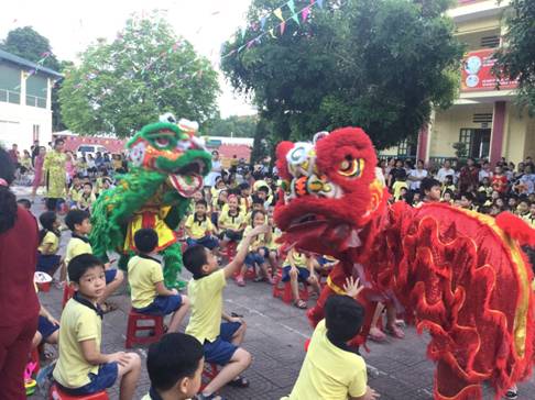 Hội Nhập. Đồng hành cùng với nhà trường trong mọi hoạt động là cha mẹ học sinh và trong ngày Tết trung thu năm nay cha mẹ học sinh lớp 1A2, đã đem đến màn múa lân sôi động không thể thiếu trong ngày tết Trung thu cho các em. Các em rất háo hức mong chờ, vui vẻ chơi đùa với những chú Tễu, chú Lân đáng yêu.