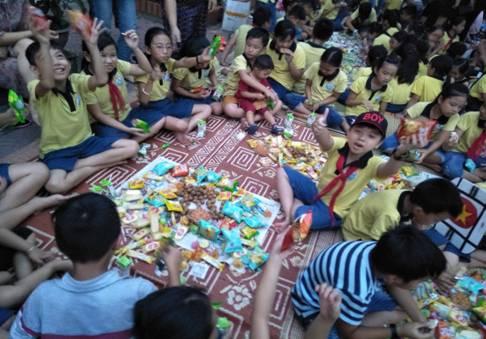 Kết thúc chương trình các em được vui phá cỗ đón trăng lên nhờ sự chuẩn bị chu đáo của các bậc cha mẹ học sinh.